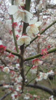私たちの畑のそばの梅の花が満開!
